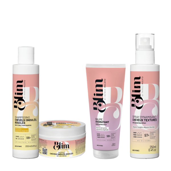 Avec Blim, Patrice Mulato a développé une gamme spécifiquement dédiée aux cheveux ondulés, bouclés, frisés et crépus. Formulés avec une majorité d’ingrédients d’origine naturelle, ces soins sont pensés pour hydrater, nourrir et mettre en valeur les cheveux texturés, tout en respectant leur nature.